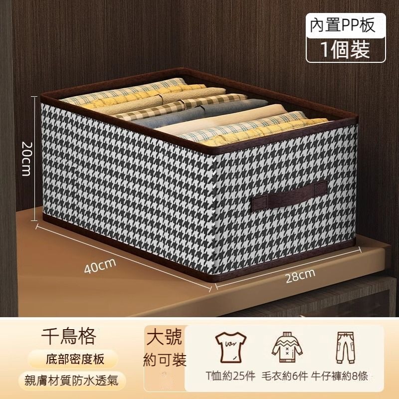 大號款千鳥無格衣物收納盒,可疊加可折疊,不用時也能節省空間,無紡布加厚面料,環保無異味,耐用可水洗